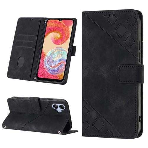 Estuche para Teléfono Samsung Galaxy A04E F04 M04 Cuero En Relieve con Tacto de Piel (Negro)