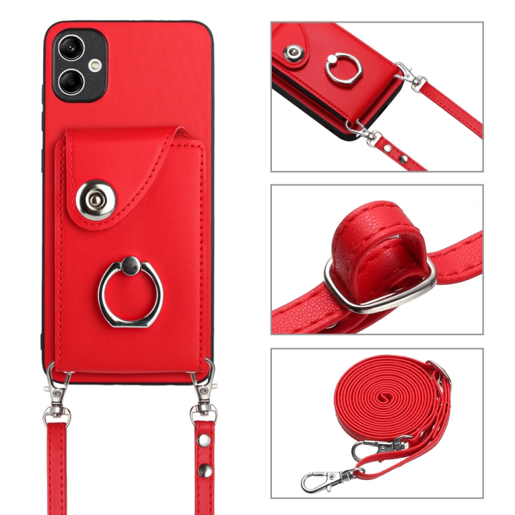 Funda para Teléfono Samsung Galaxy A04E M04 F04 4G con Soporte para Anillo Bolsa para Tarjeta y Cordón Largo (Rojo)