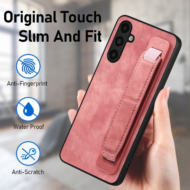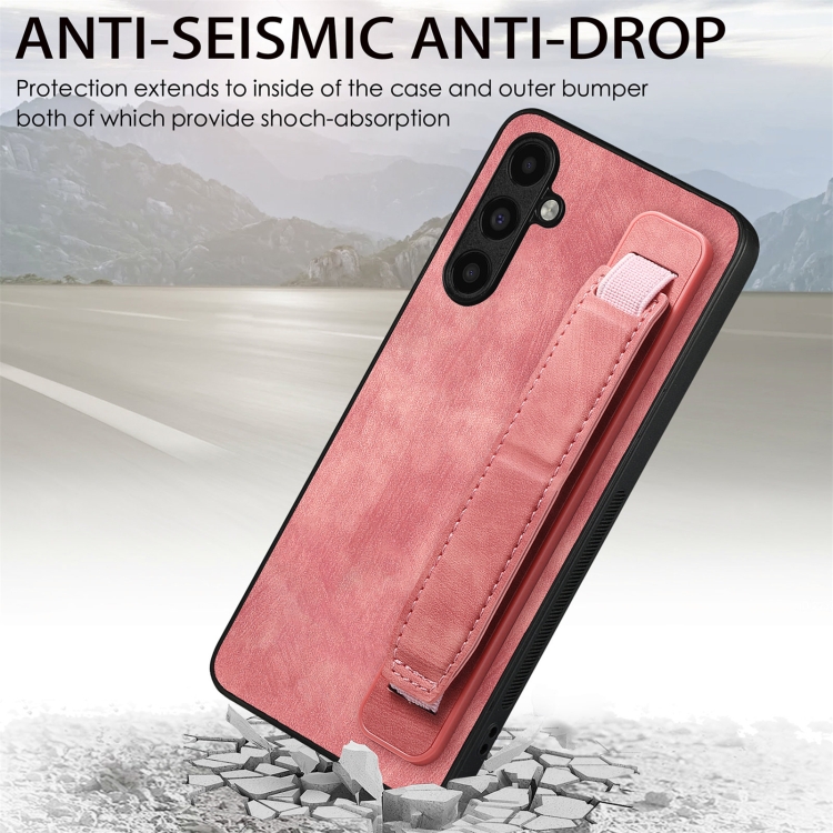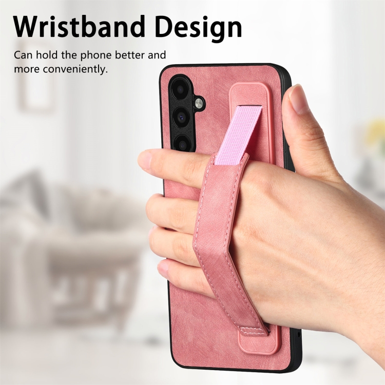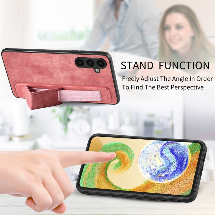 Funda para Teléfono Samsung Galaxy A04S Retro con Soporte de Pulsera y Parte Trasera de Cuero (Rosa)