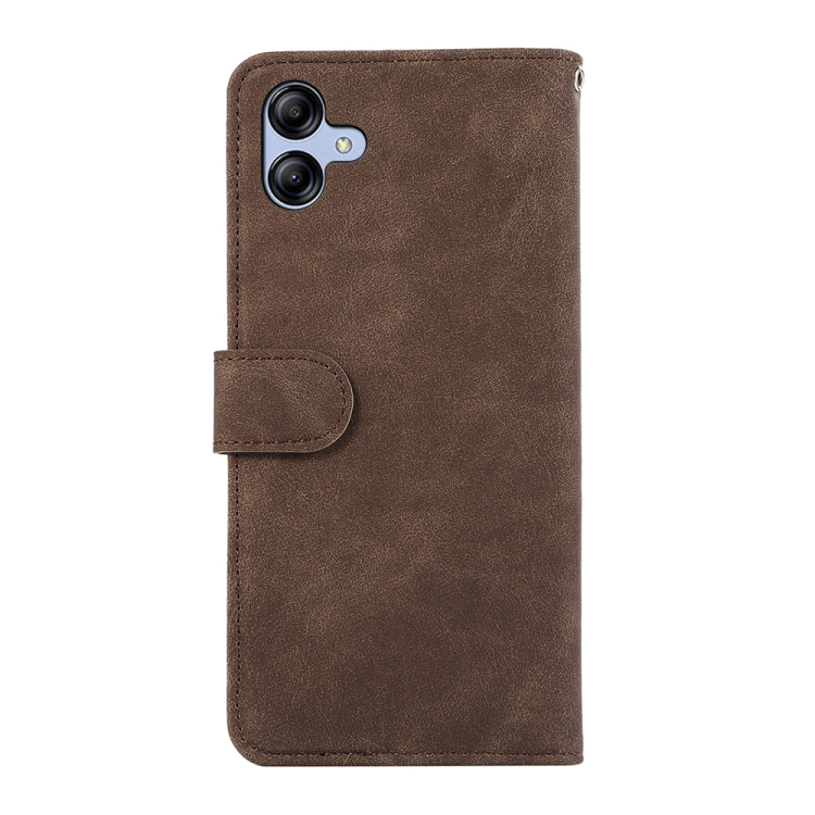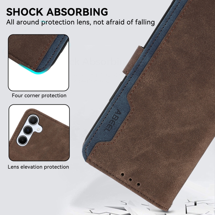 Funda de Cuero Abeel para Samsung Galaxy A05 4G Color Block Magnética Rfid (Marrón-Azul)