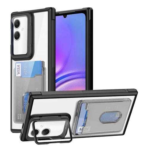 Estuche para Teléfono Samsung Galaxy A05 4G TPU Híbrido Acrílico con Soporte y Bolsa de Tarjeta (Negro)