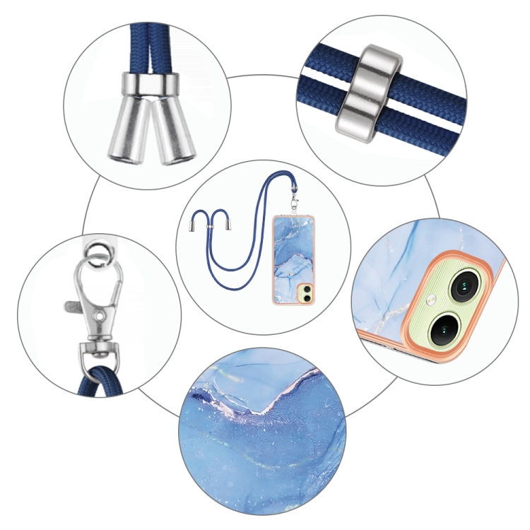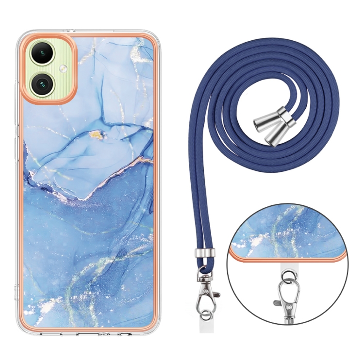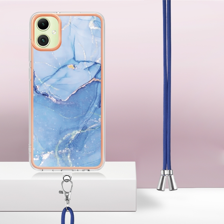 Estuche para Teléfono Samsung Galaxy A05 Imd Doble Cara Mármol Galvanizado con Cordón (Azul)