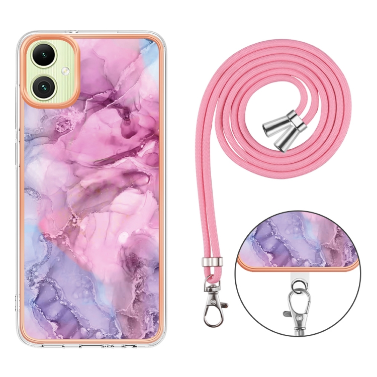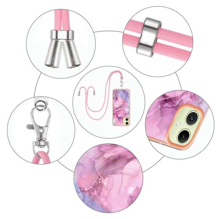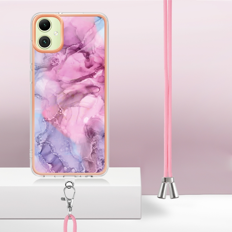 Estuche para Teléfono Samsung Galaxy A05 IMD Doble Cara Mármol Galvanizado con Cordón (Rosa)