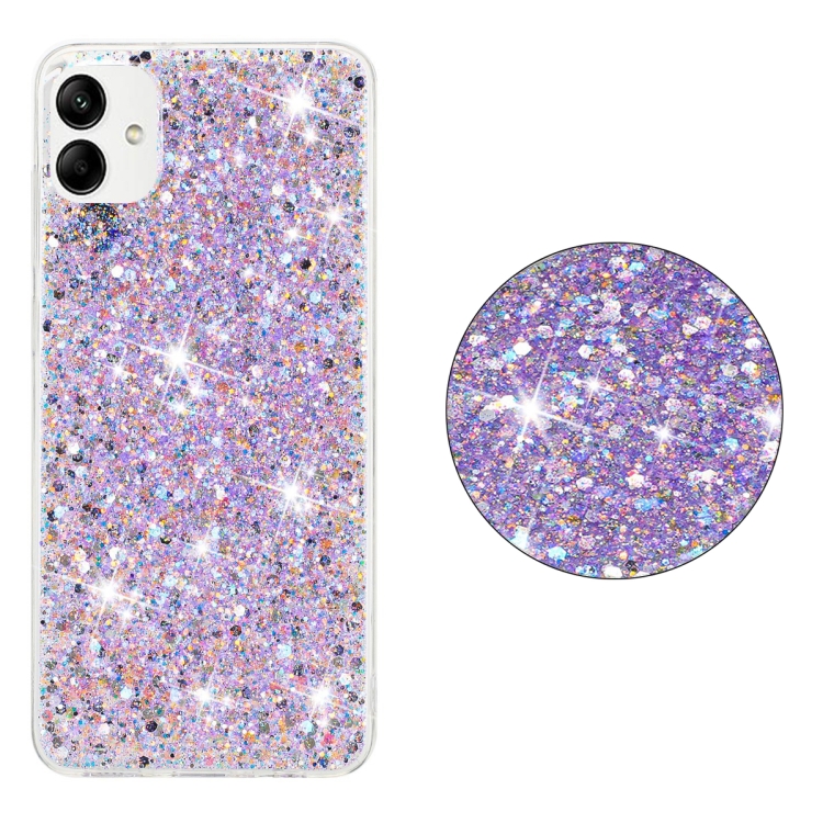 Estuche para teléfono Samsung Galaxy A05 Transparente con Purpurina en polvo TPU (Púrpura)