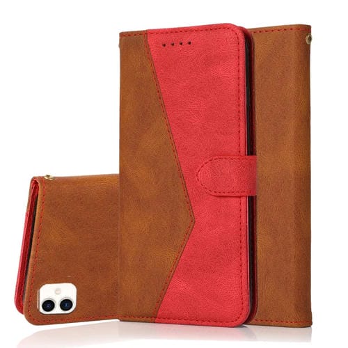 Funda de Cuero Samsung Galaxy A05 con Costuras de Dos Colores (Marrón Rojo)