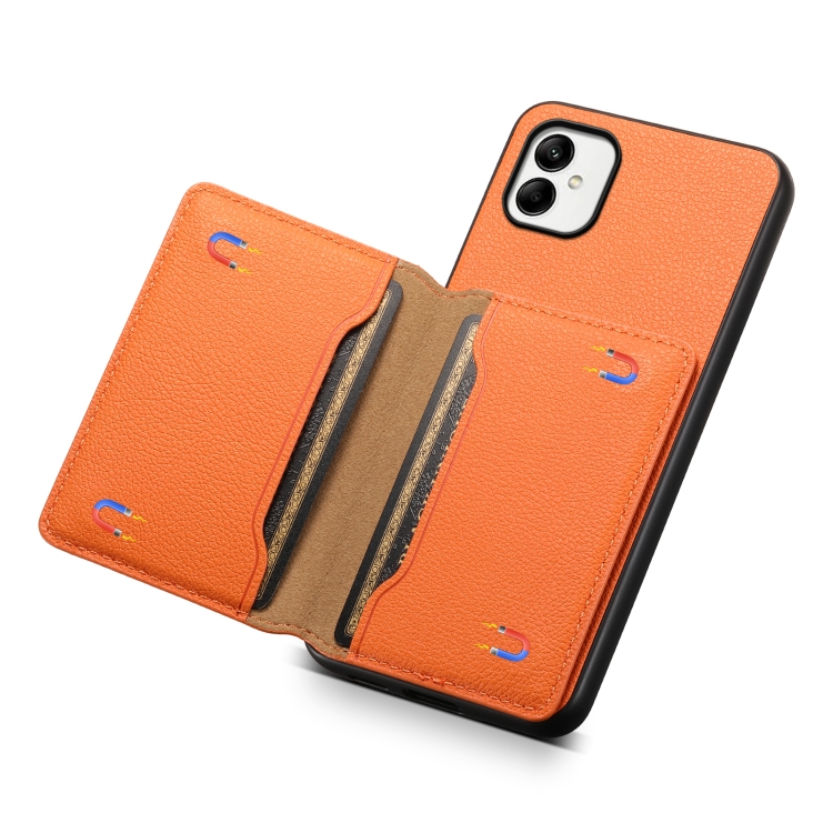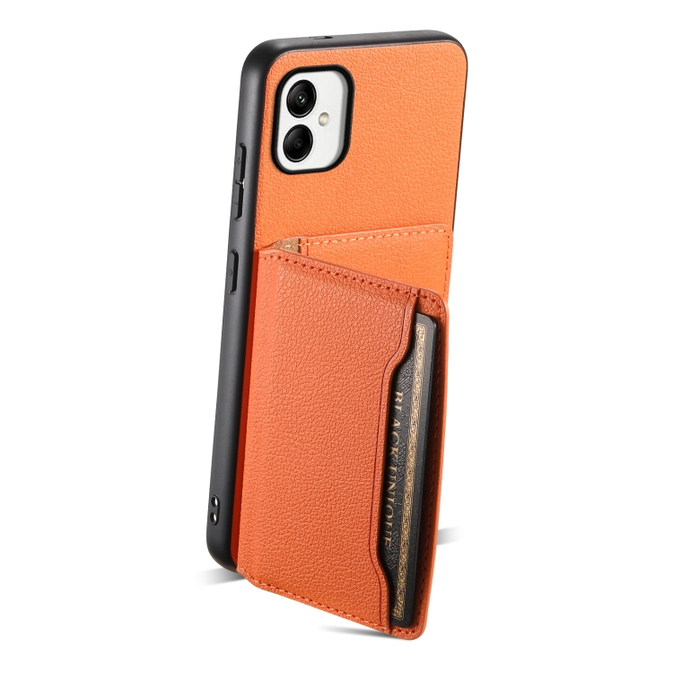 Funda para Teléfono Samsung Galaxy A05 Diseño Bolsa de Tarjeta Textura Becerro (Naranja)