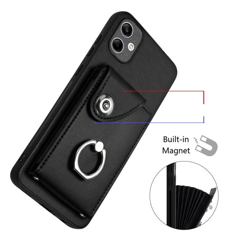 Funda para Teléfono Samsung Galaxy A05 con Soporte para Anillo y Bolsa para Tarjeta con Cordón Largo (Negro)
