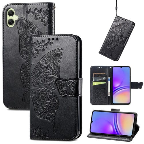 Funda para Teléfono Samsung Galaxy A05 Cuero Relieve Flor de Amor y Mariposa (Negro)