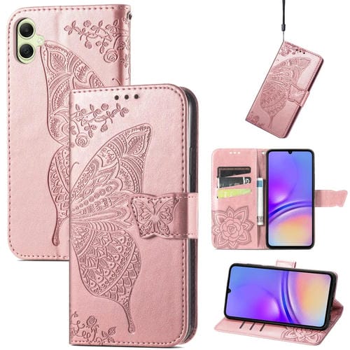 Funda para Teléfono Samsung Galaxy A05 Cuero Relieve Flor Amor y Mariposa (Oro Rosa)