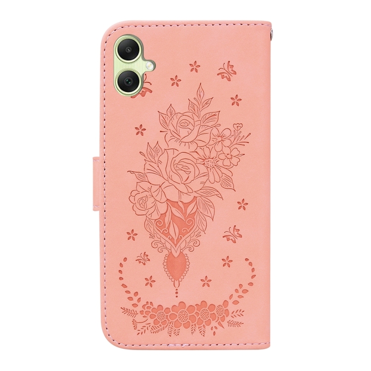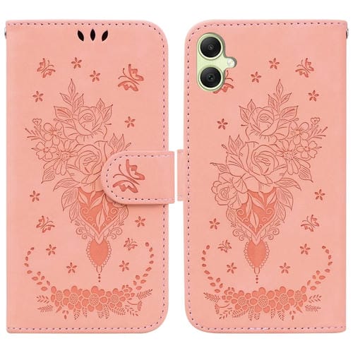 Funda para Teléfono Samsung Galaxy A05 Cuero Relieve Mariposa y Rosa (Rosa)