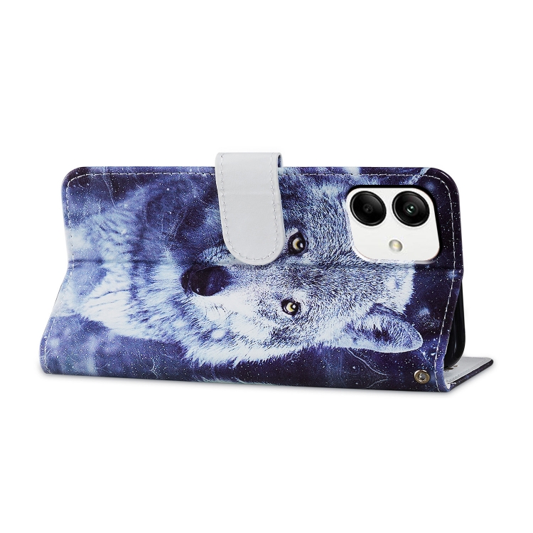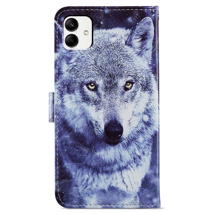 Funda para Teléfono Samsung Galaxy A05 Cuero Tapa Horizontal Patrón Pintado (Lobo Blanco)