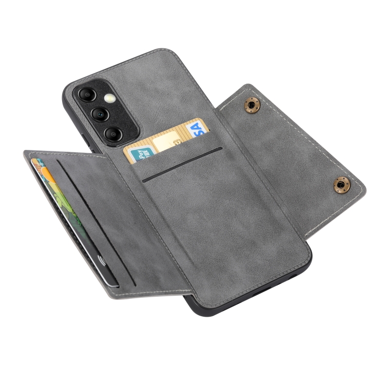 Funda para Samsung Galaxy A05S 4G Magnética con Ranuras para Tarjetas y Doble Hebilla (Gris)