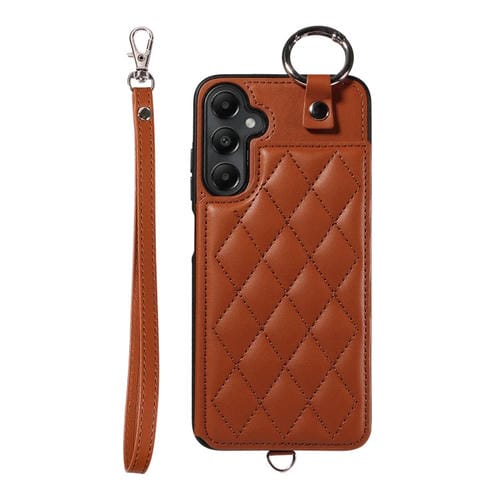 Estuche para Teléfono Samsung Galaxy A05S con Bolsa para Tarjetas Textura Rómbica y Cordón Corto (Marrón)
