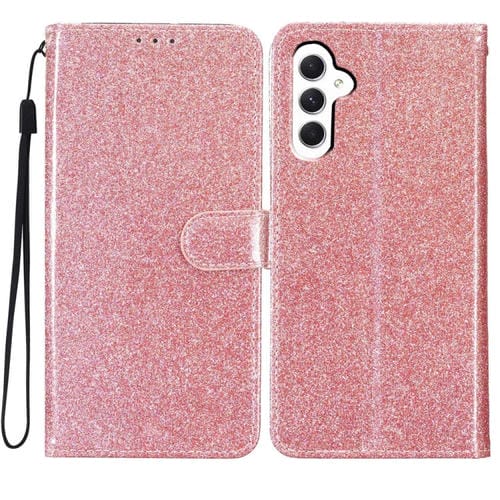 Funda de Cuero para Samsung Galaxy A05S con Tapa en Polvo con Purpurina (Oro Rosa)