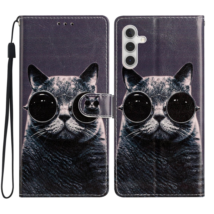 Funda de Cuero Samsung Galaxy A05S con Dibujo de Colores Gato de Gafas de Sol