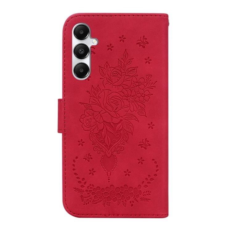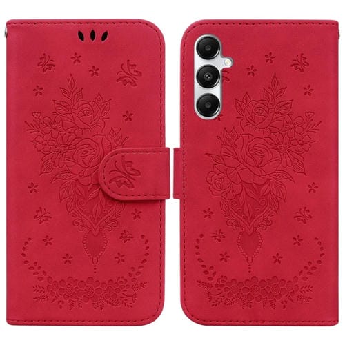 Funda para Teléfono Samsung Galaxy A05S Cuero Relieve Mariposa y Rosa (Rojo)