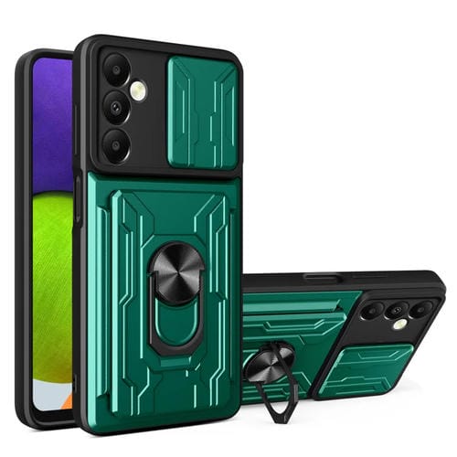 Funda para Samsung Galaxy A05S Sliding Camshield TPU + PC con Ranura para Tarjeta (Verde Oscuro)