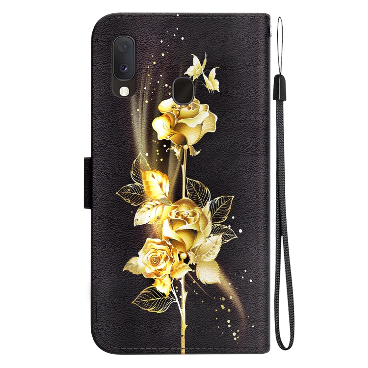 Funda para Teléfono Samsung Galaxy A10E A20E Cuero Dibujo Coloreado Textura Cristal (Mariposa Dorada Rosa)