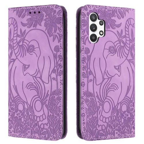 Funda para Teléfono Samsung Galaxy A13 4G / 5G Cuero Relieve Elefante Retro (Púrpura)
