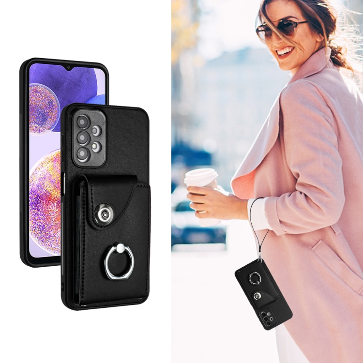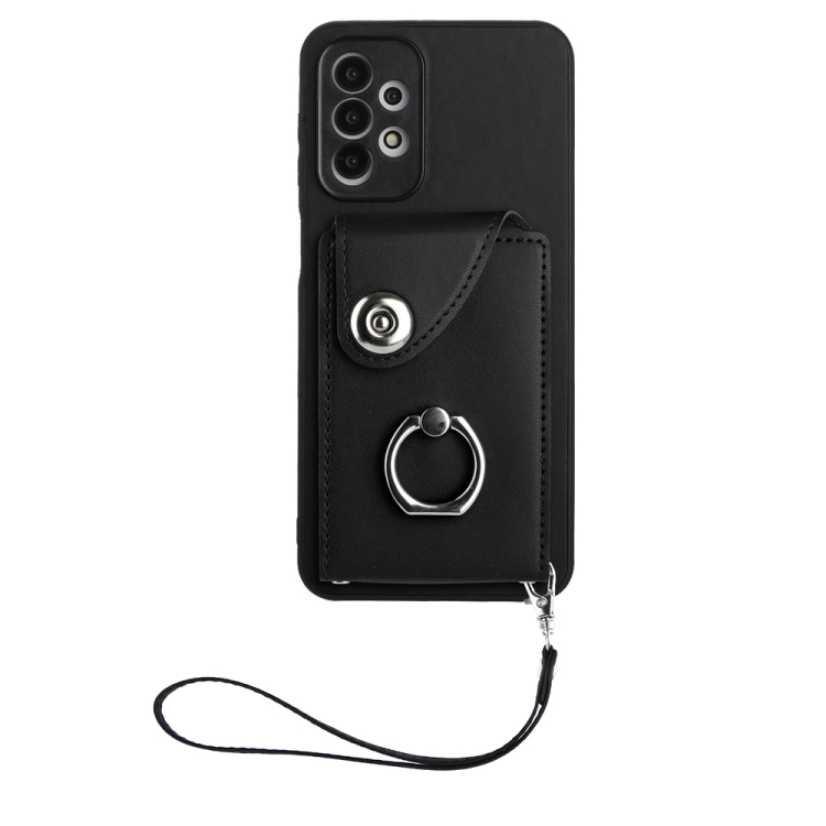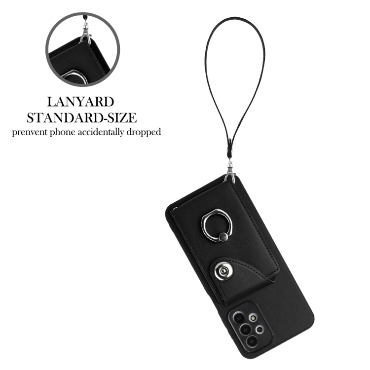 Bolsa para Tarjeta Samsung Galaxy A13 4G Funda Teléfono con Soporte para Anillo y Cordón (Negro)