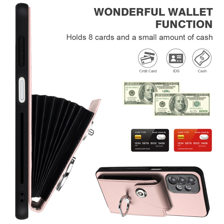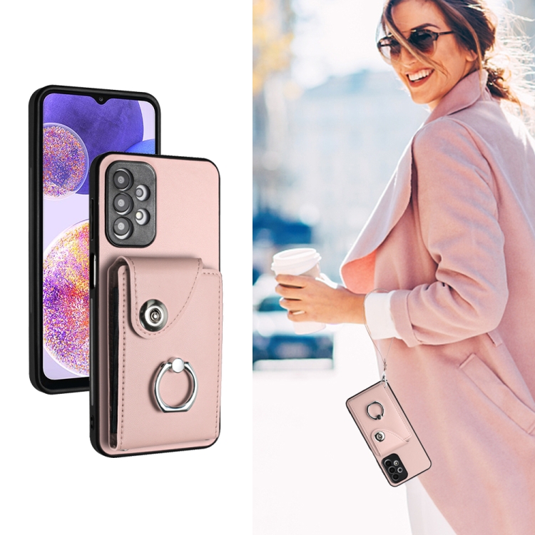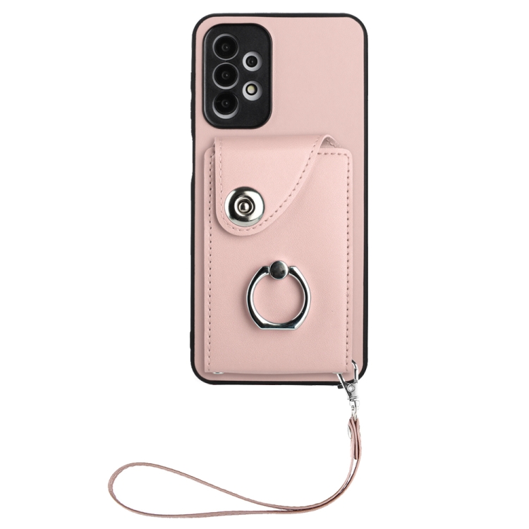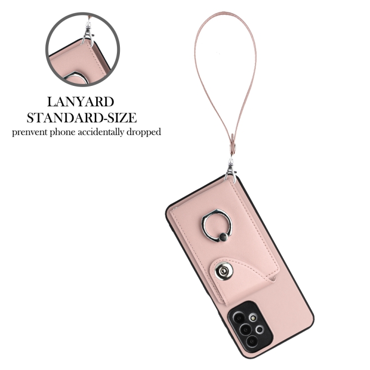Bolsa para Tarjeta de Órgano para Samsung Galaxy A13 4G Funda para Teléfono con Soporte para Anillo y Cordón (Rosa)