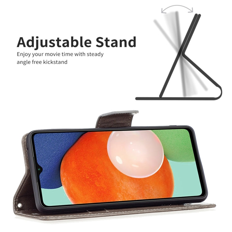 Estuche de teléfono Samsung Galaxy A13 4G Cuero en relieve Dos mariposas (Gris)