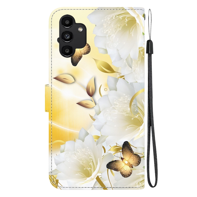 Funda de Cuero Samsung Galaxy A13 4G con Dibujo Coloreado Textura de Cristal (Epiphyllum de Mariposa Dorada)