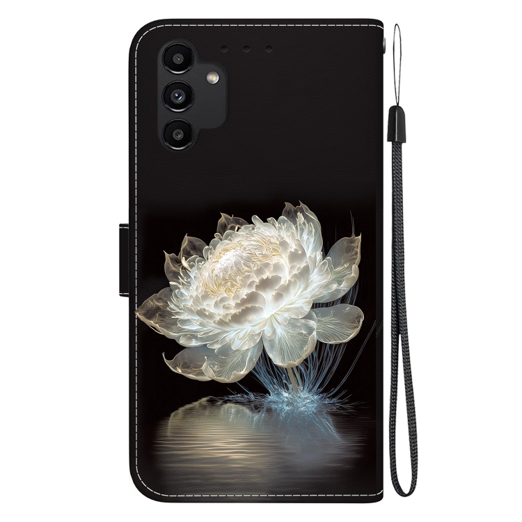 Funda de Cuero Samsung Galaxy A13 4G con Dibujo Coloreado y Textura de Cristal (Peonía de Cristal)