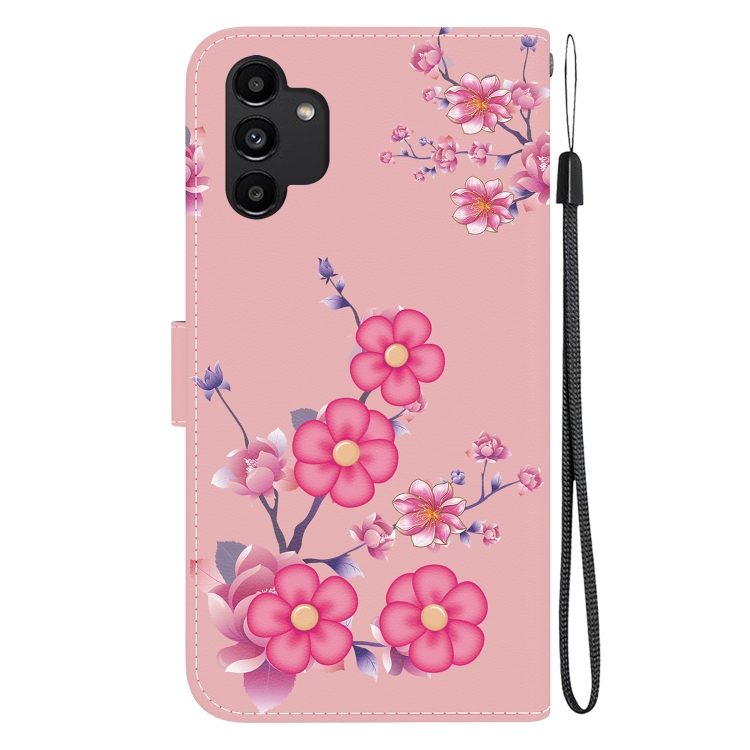 Funda para Teléfono Samsung Galaxy A13 4G Cuero con Dibujo Coloreado y Textura de Cristal (Flores de Cerezo)