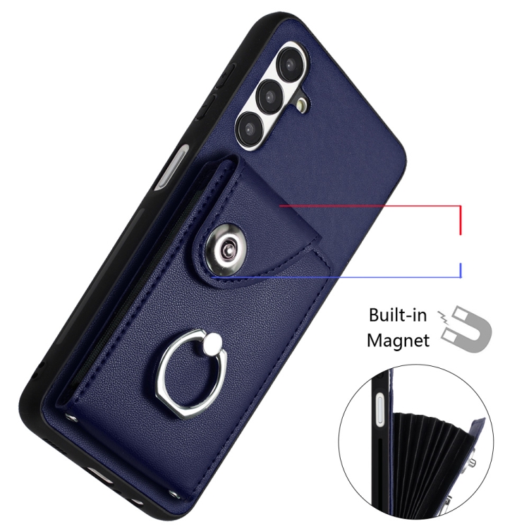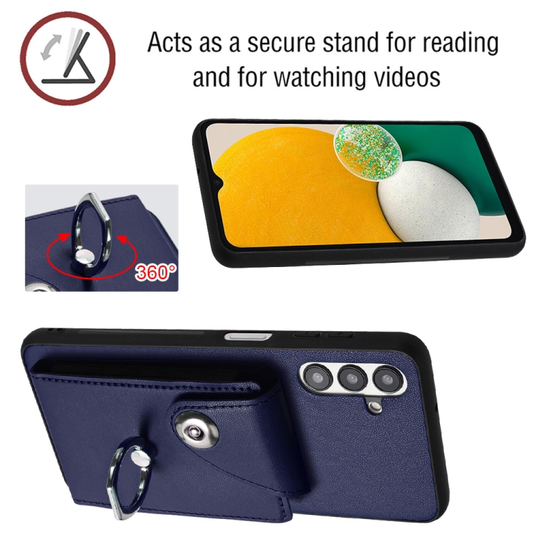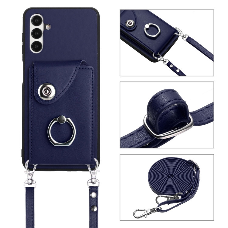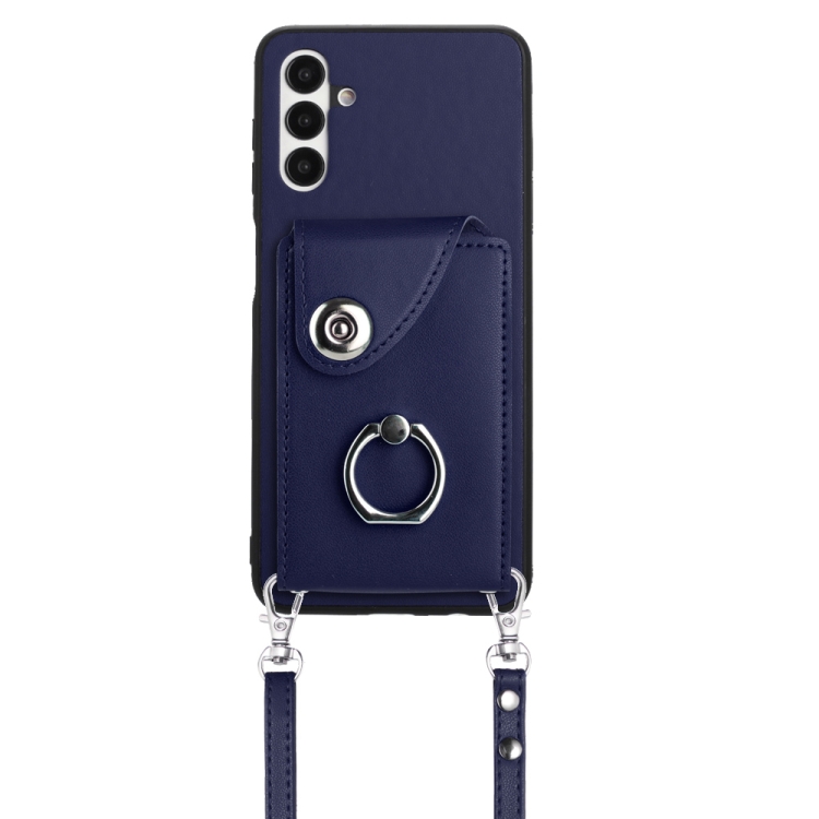 Funda para Teléfono Samsung Galaxy A13 5G / A04S con Soporte para Anillo y Bolsa para Tarjeta con Cordón Largo (Azul)