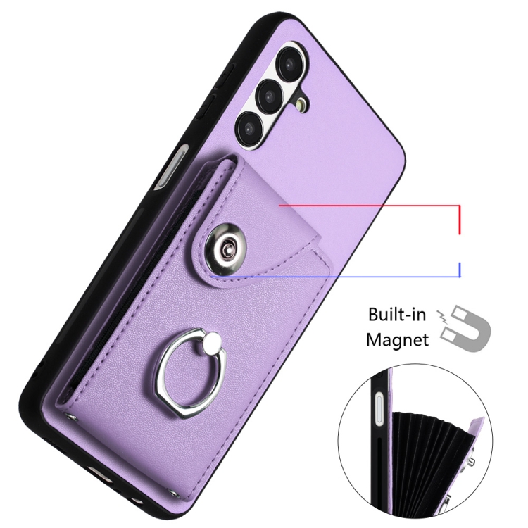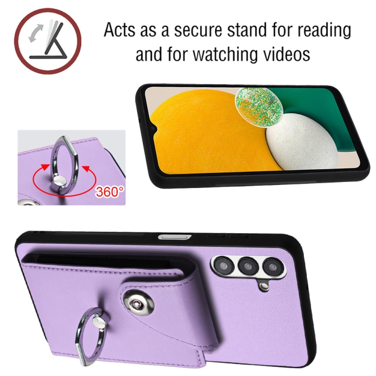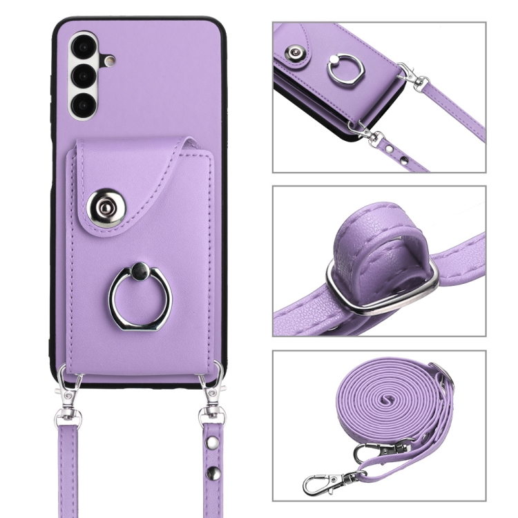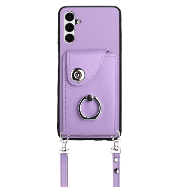 Funda para Teléfono Samsung Galaxy A13 5G y A04S con Soporte para Anillo Bolsa para Tarjeta y Cordón Largo (Púrpura)