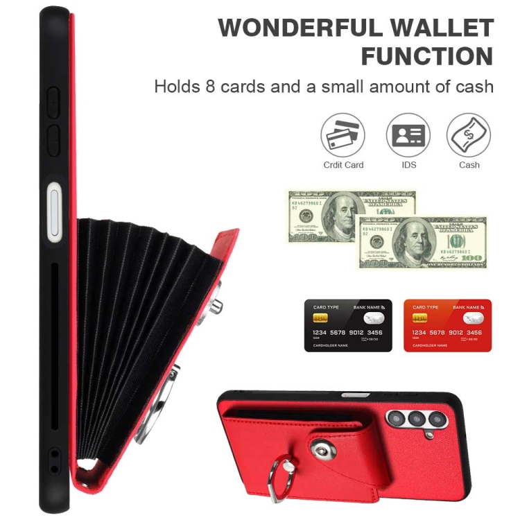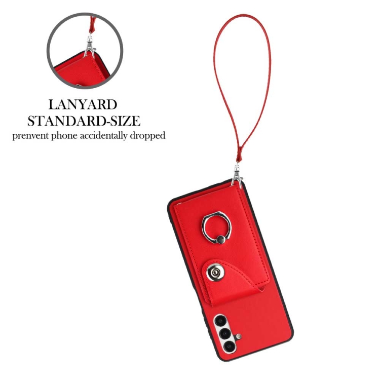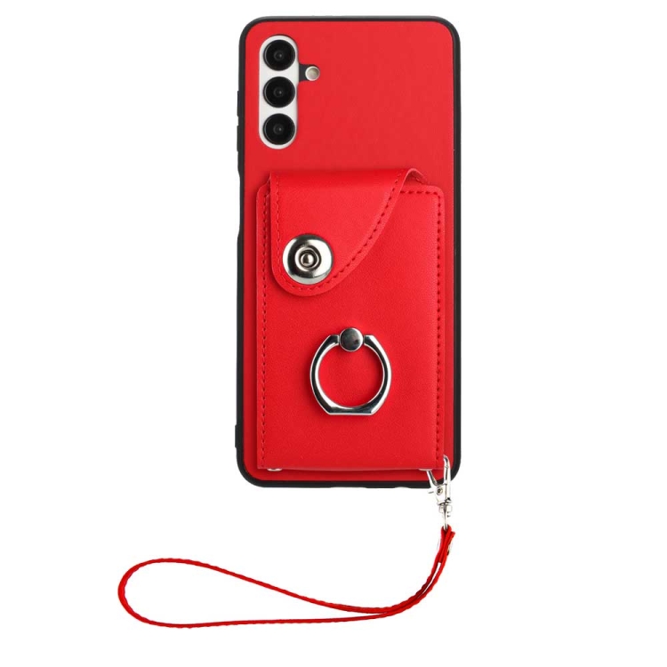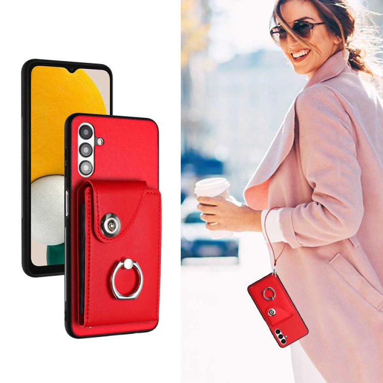 Funda para Teléfono Samsung Galaxy A13 5G y A04S de PU con Soporte para Anillo y Bolsa para Tarjeta con Cordón (Rojo)