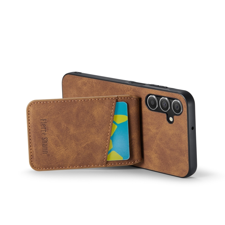 Funda para teléfono Samsung Galaxy A13 5G Fierre Shann Crazy Horse Titular de tarjeta Contraportada Pu (Marrón)