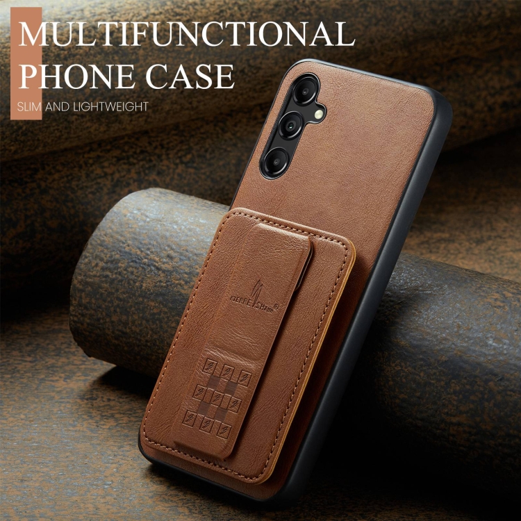 Funda para teléfono Fierre Shann Galaxy A13 5G Oil Wax con tarjetero de cuero de vaca (Marrón)