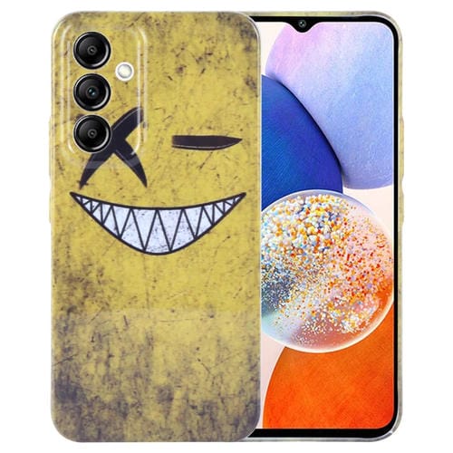 Funda para Teléfono Samsung Galaxy A14 5G PC con Orificio Preciso y Patrón Pintado (Fondo Amarillo Sonriente)