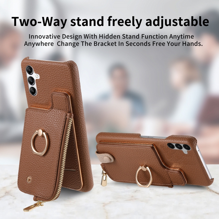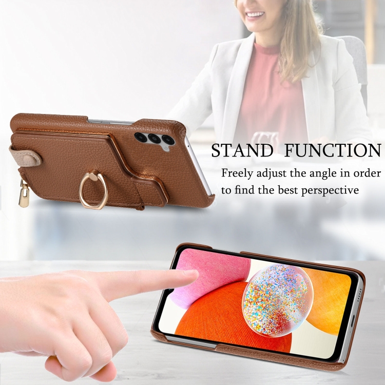 Funda para Samsung Galaxy A14 Litchi Leather Oil Edge Ring Zipper Wallet Back (Marrón)