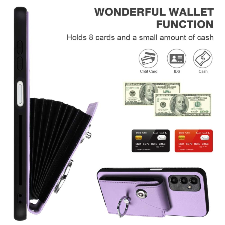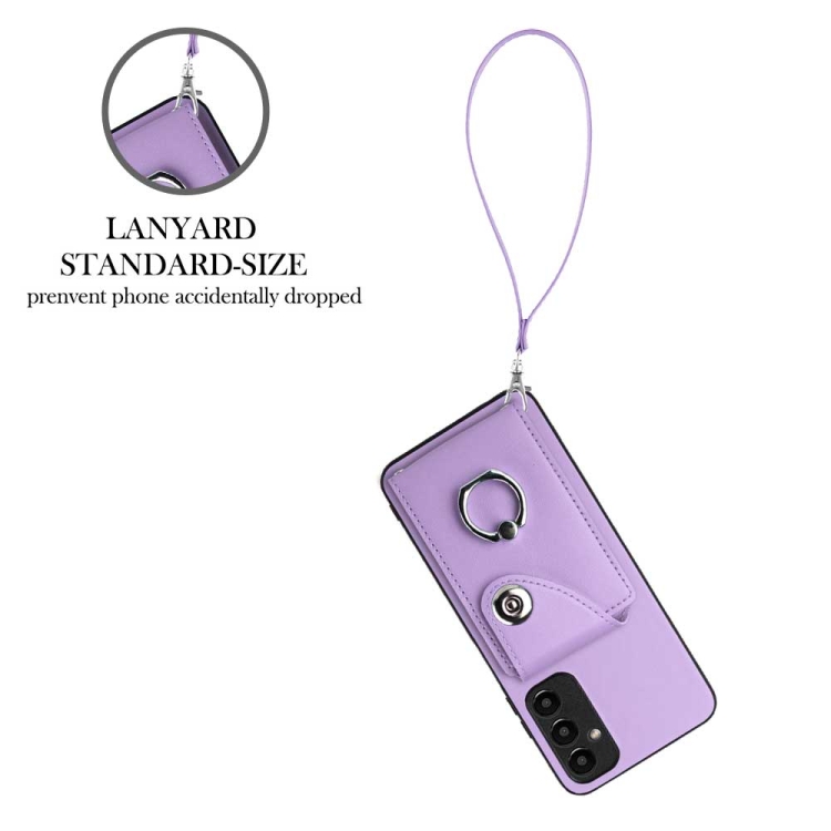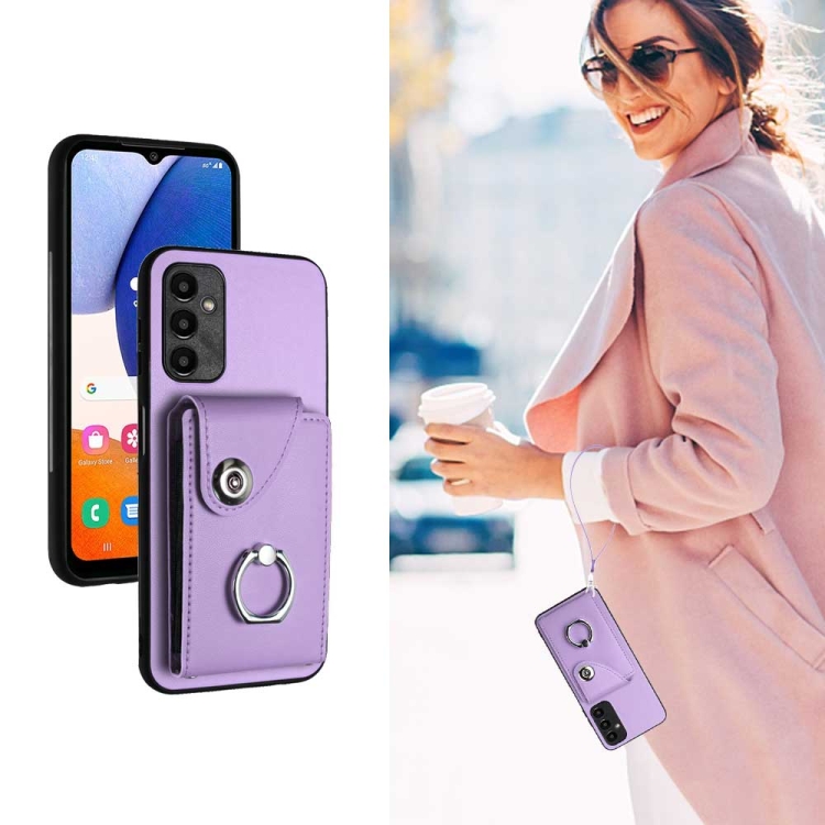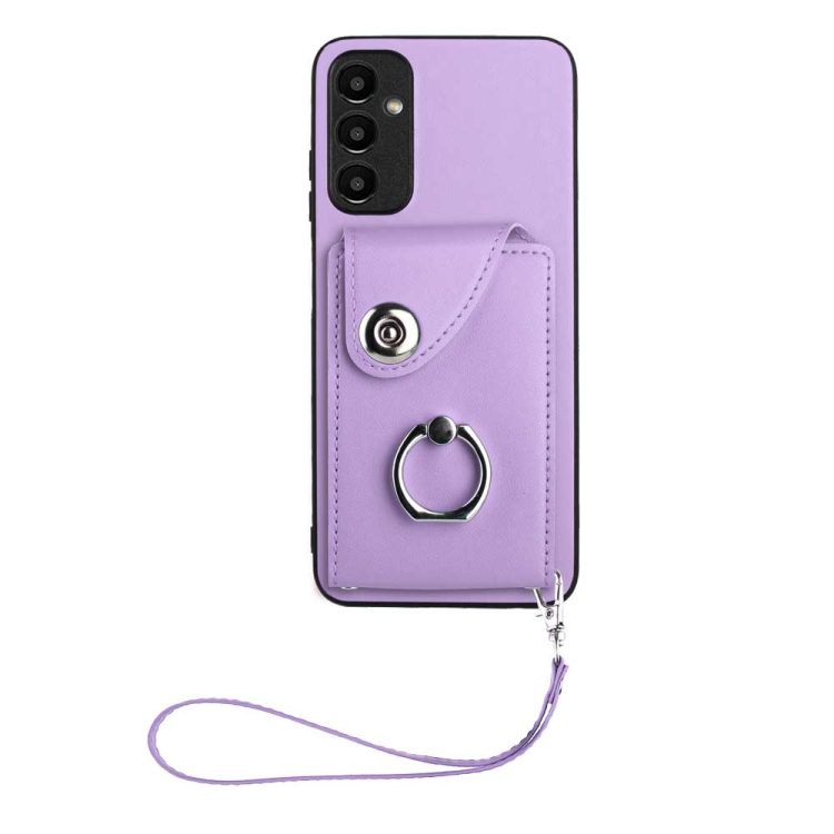 Bolsa para Tarjeta Samsung Galaxy A15 4G Soporte para Anillo Funda de PU con Cordón (Púrpura)