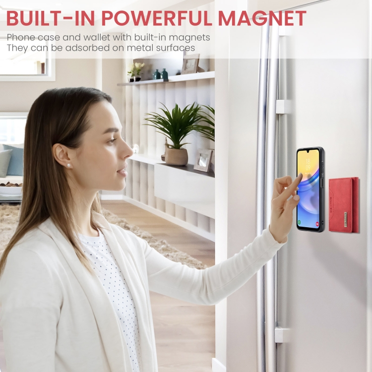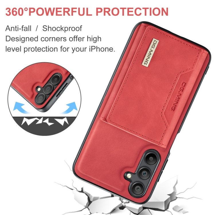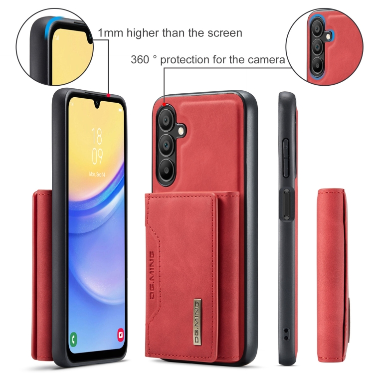 Bolsa para Múltiples Tarjetas 3 Pliegues + Funda Magnética para Samsung Galaxy A15 5G / A15 4G Dg.Ming M2 Series (Rojo)