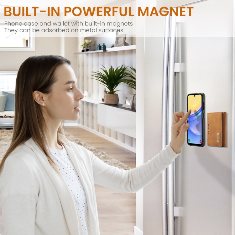 Bolsa para Tarjetas Múltiples 3 Pliegues + Funda Magnética para Samsung Galaxy A15 5G A15 4G Dg.Ming M2 Series (Marrón)