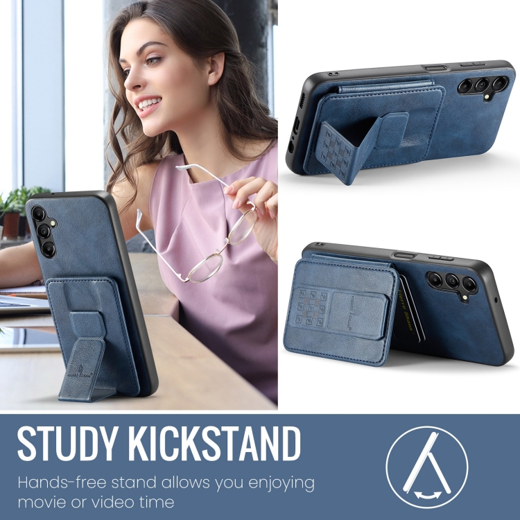 Funda para teléfono Samsung Galaxy A15 5G Fierre Shann Oil Wax con tarjetero de cuero de vaca (Azul)