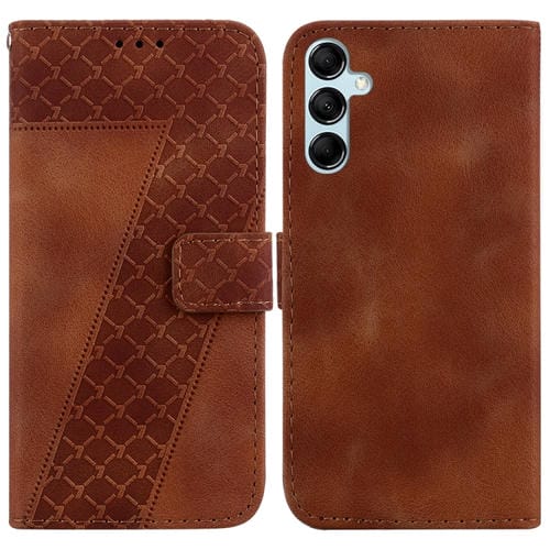 Funda de Cuero Samsung Galaxy A15 con Relieve en Forma de 7 (Marrón)