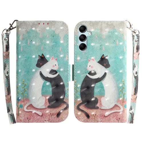 Funda de Cuero para Samsung Galaxy A15 con Tapa Horizontal y Diseño 3D (Gato Blanco y Negro)