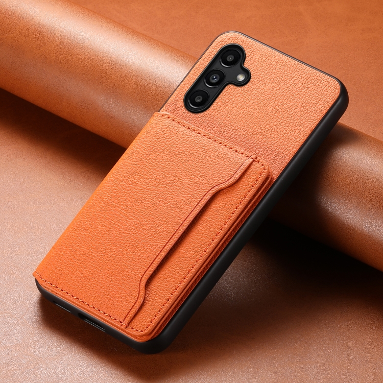 Funda para Teléfono Samsung Galaxy A15 Diseño Bolsa de Tarjeta Textura de Becerro (Naranja)