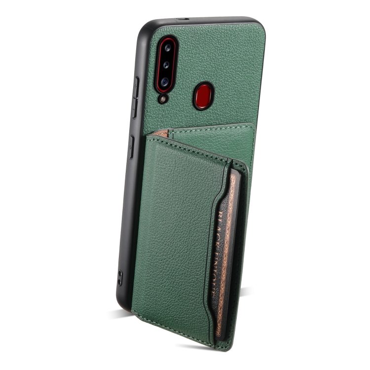 Funda para Teléfono Samsung Galaxy A20S Diseño Bolsa de Tarjeta Textura de Becerro (Verde)
