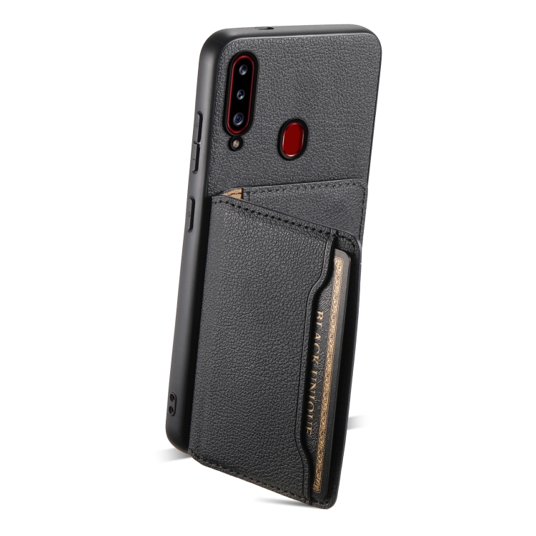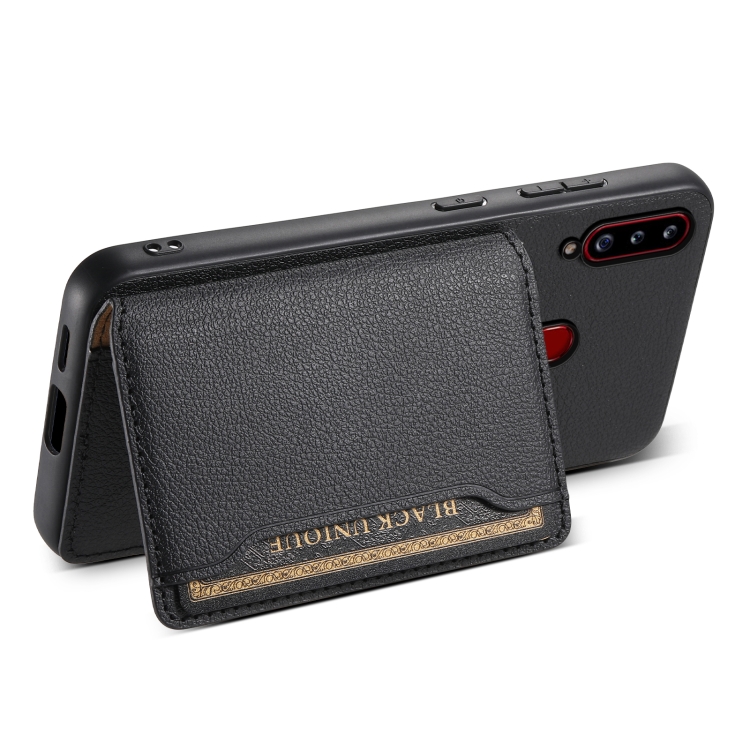 Funda para Teléfono Samsung Galaxy A20S Bolsa para Tarjetas Textura de Becerro (Negro)