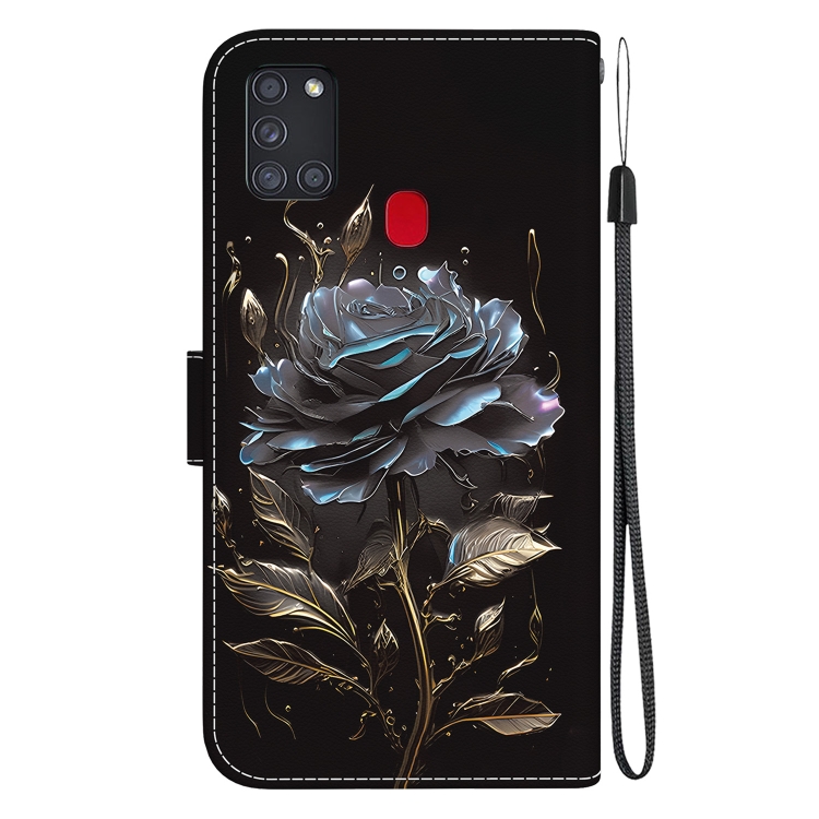 Funda de Cuero Samsung Galaxy A21S Dibujo Coloreado Textura de Cristal (Rosa Negra)