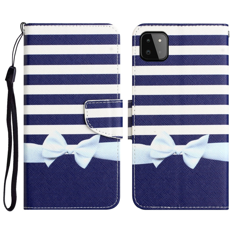 Para Samsung Galaxy A22 5G Estuche de teléfono de cuero con dibujo coloreado (nudo de lazo)