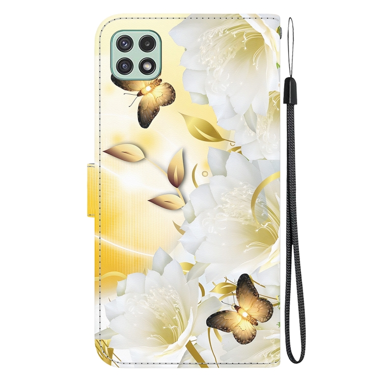 Funda de Cuero Samsung Galaxy A22 5G con Dibujo Coloreado Textura de Cristal (Epiphyllum Mariposa Dorada)