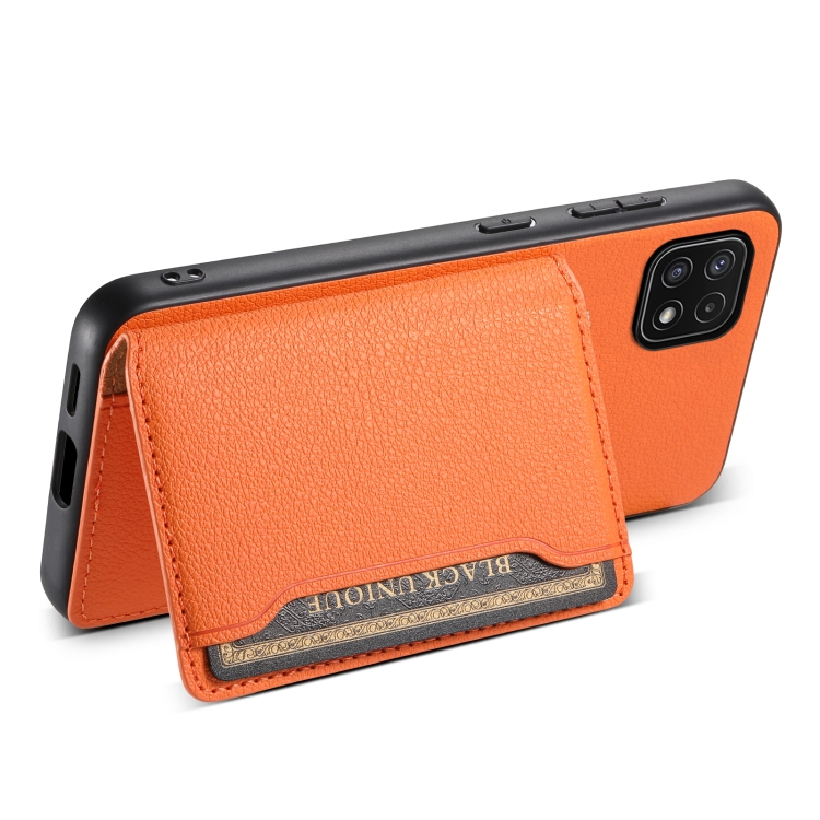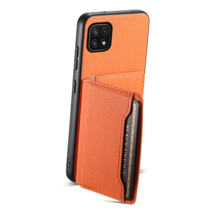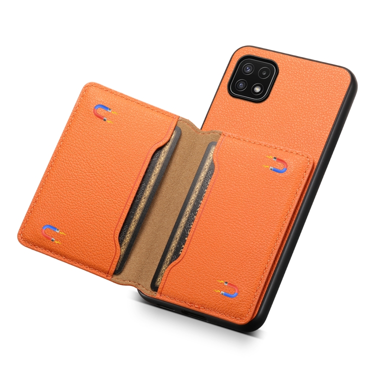 Funda para Teléfono Samsung Galaxy A22 5G Diseño Bolsa para Tarjetas Textura de Becerro (Naranja)