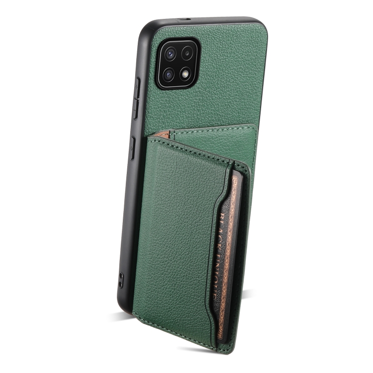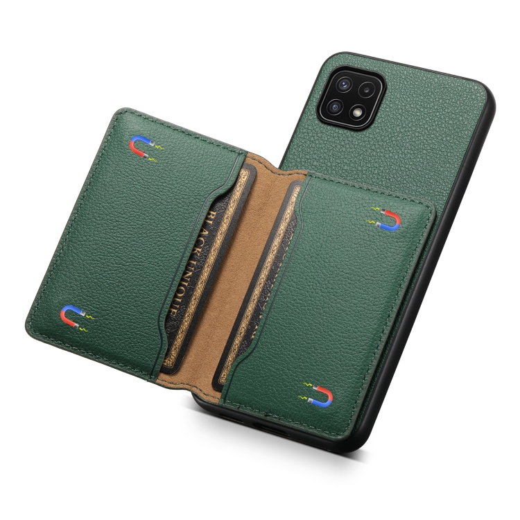 Funda para Teléfono Samsung Galaxy A22 5G Diseño Bolsa para Tarjetas Textura de Becerro (Verde)